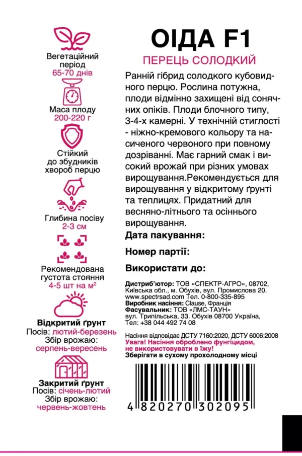 Насіння солодкого перцю Оіда F1 кубовидного типу, упаковка 8 штук